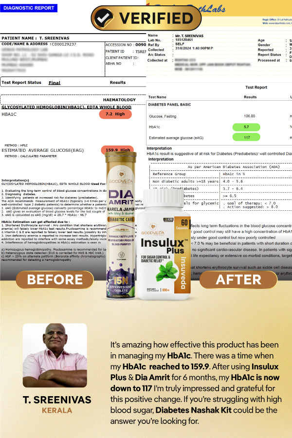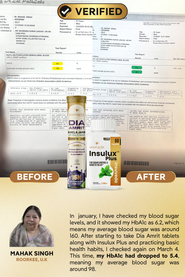 Helps naturally reduce blood sugar spikes, leading to better control of your daily sugar levels and lower HbA1C, which is important for managing diabetes.