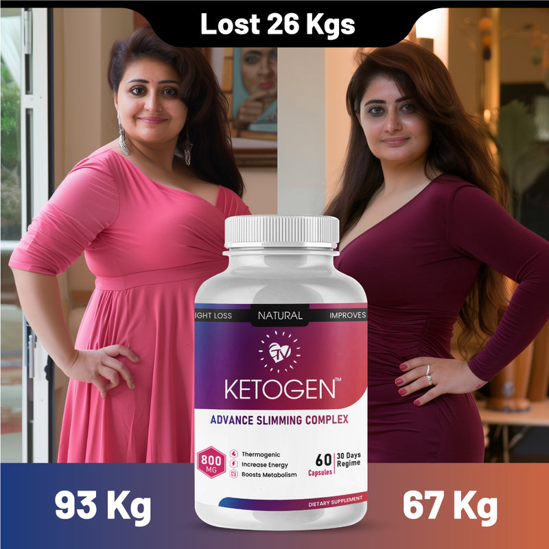 Ketogen Advanced Slimming Complex is a natural weight loss supplement that combines powerful ingredients like Garcinia Indica, Green Tea, and Guggulu to boost metabolism, suppress appetite, and support overall digestive health. It works by increasing fat burning, reducing fat storage, and helping you manage cravings.