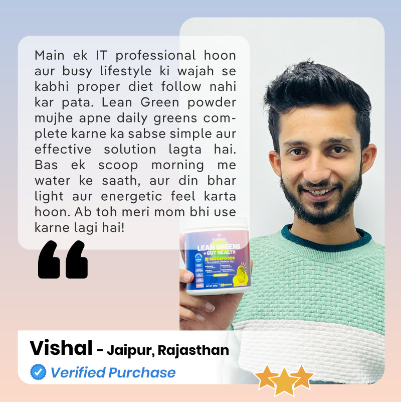 Goodveda Lean & Green is a powerful superfood blend designed to improve gut health, naturally detoxify the body, and support weight management. It is made from a combination of nutrient-rich greens, antioxidants, and fiber to enhance overall well-being.