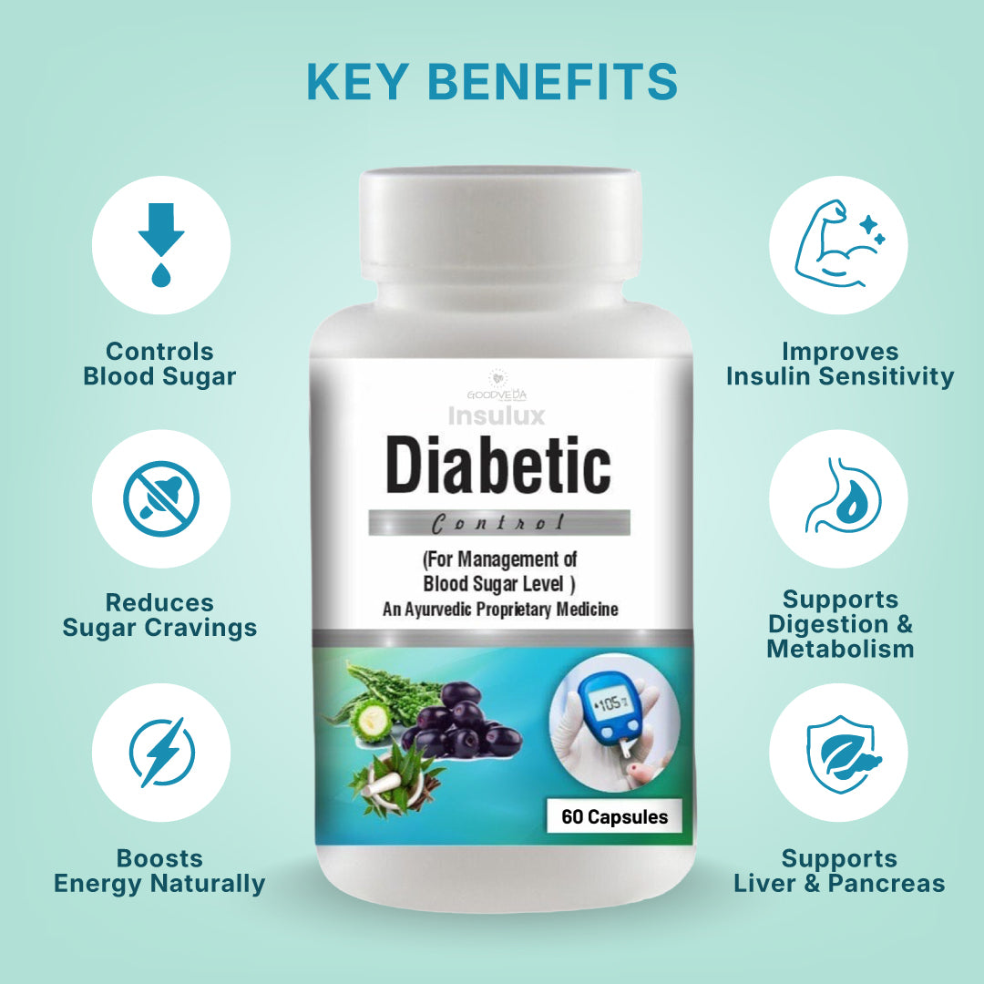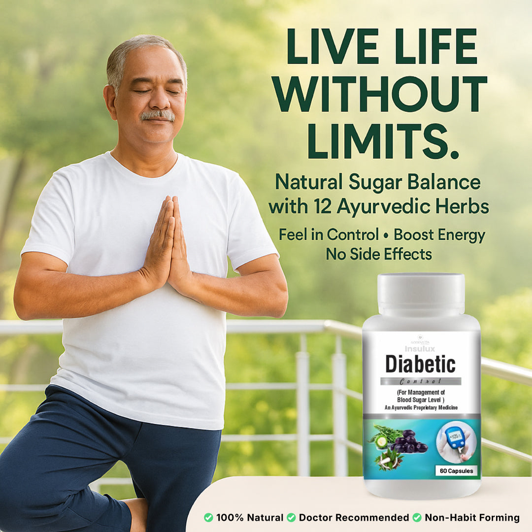 Diabetic Control is an Ayurvedic formulation designed to help regulate blood sugar levels, enhance insulin function, and promote better metabolic balance naturally.