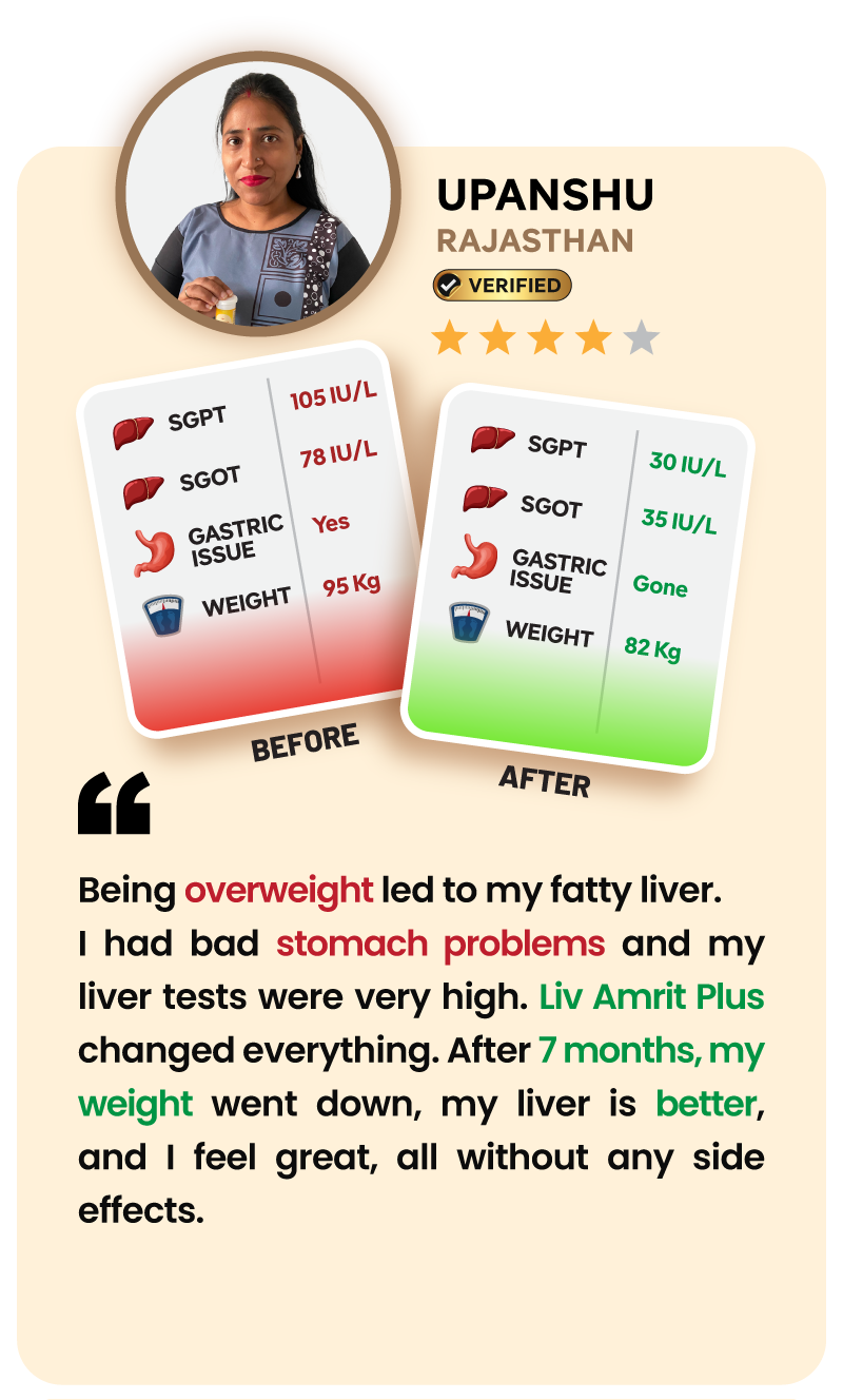 You may start feeling lighter digestion and better energy levels within 30 days, with visible improvements in fatty liver symptoms and metabolism by the second month. Full liver-strengthening benefits are noticeable in 3 months.