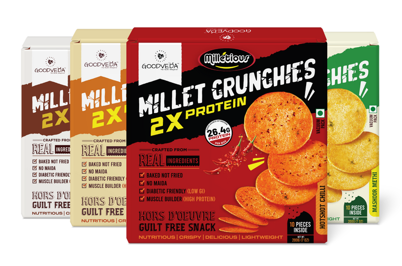 With 10.56 grams of protein per serving, Millet Crunchies provide essential amino acids necessary for muscle repair and growth, making them an excellent snack for muscle building.